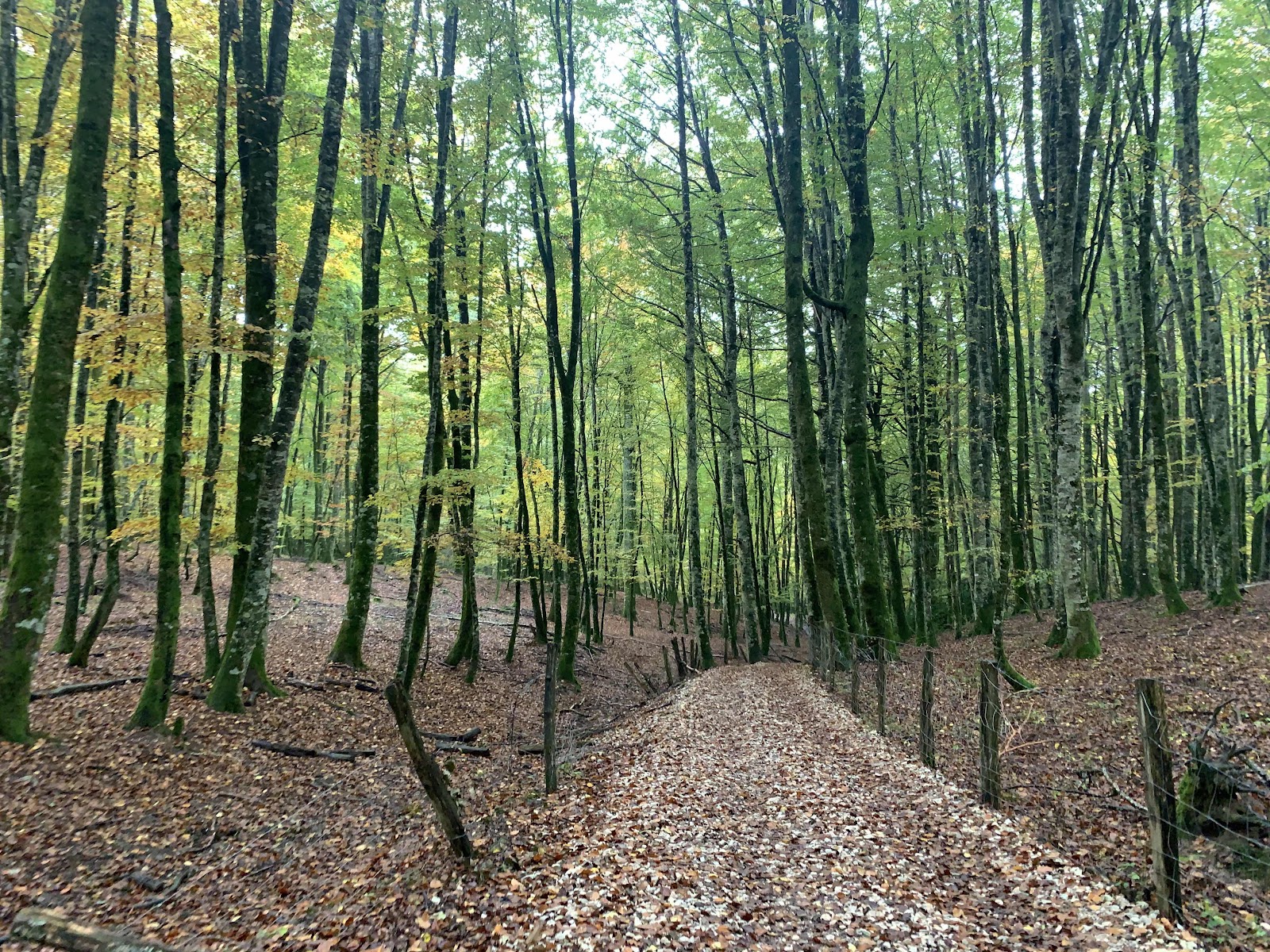 Empezamos el sendero en el robledal de Brujas, típico paisaje de otoño lleno de árboles con el océano de hojas rodeándonos.