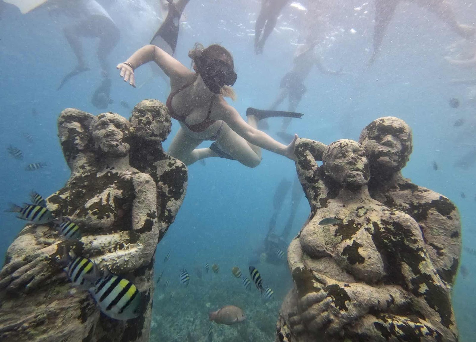 Hemos alquilado un barquito con un driver que nos irá llevando donde quedamos. Visitamos las estatuas de debajo del mar que están en Gili Meno, el Turttle Point que está entre Gili Meno y Gili Air, y finalmente un barco hundido alrededor de Gili Meno y Gili T.