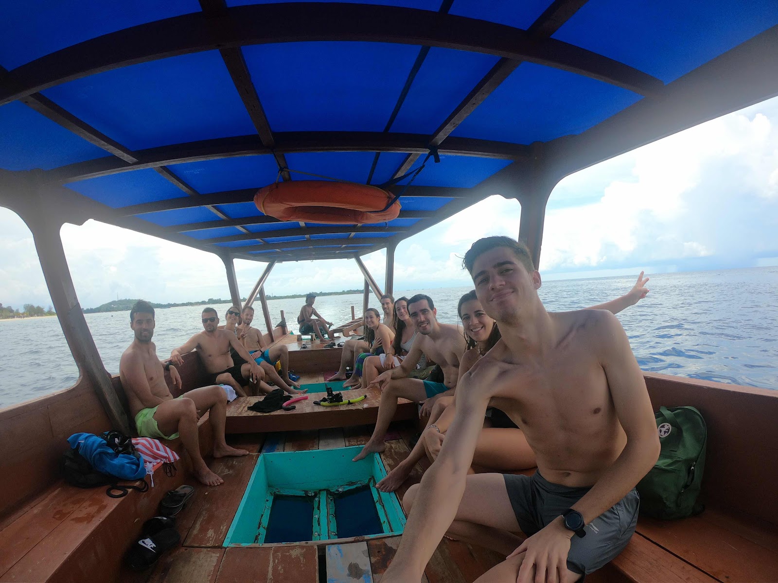 Enric se junta con nosotros (ha estado haciendo snorkel de mientras) y nos subimos al barco que nos lleva en medio del mar.